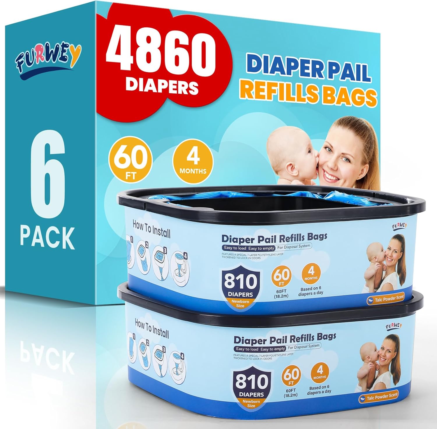 - high-capacity: This 4-pack box holds up to 2200 diapers or briefs, Each liner pack refill is over 33 feet long
